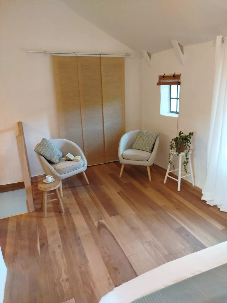 Dans ce refuge douillet, vous trouverez tout le confort moderne tout en préservant le caractère authentique du lieu. La décoration épurée et naturelle invite à la relaxation et promet des nuits paisibles. La lumière douce qui inonde les espaces et l’ambiance apaisante du lieu vous permettront de vous ressourcer pleinement, le temps d’un séjour en harmonie avec la nature.
